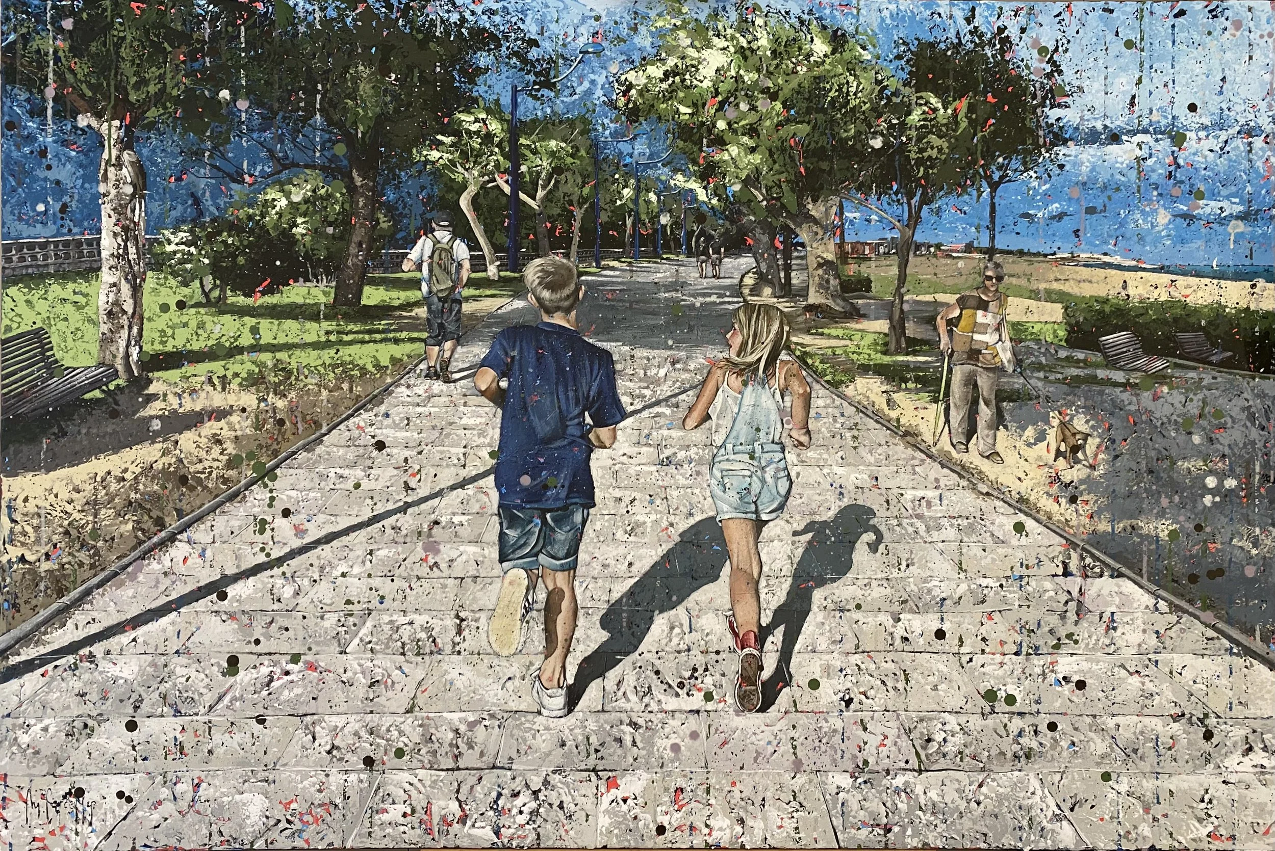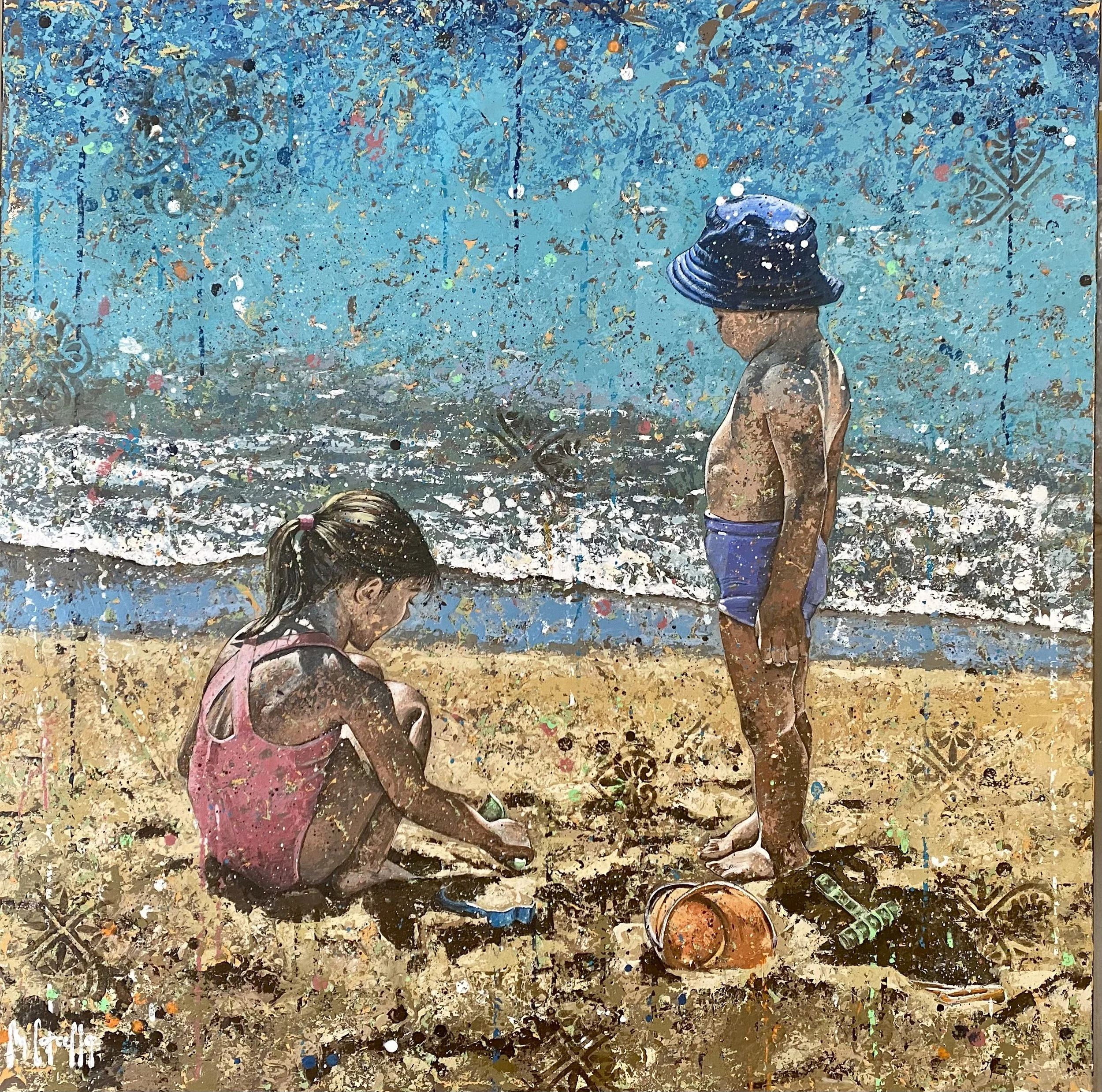 Playing in the beach Acrylic on canvas, 100 x 100 cm