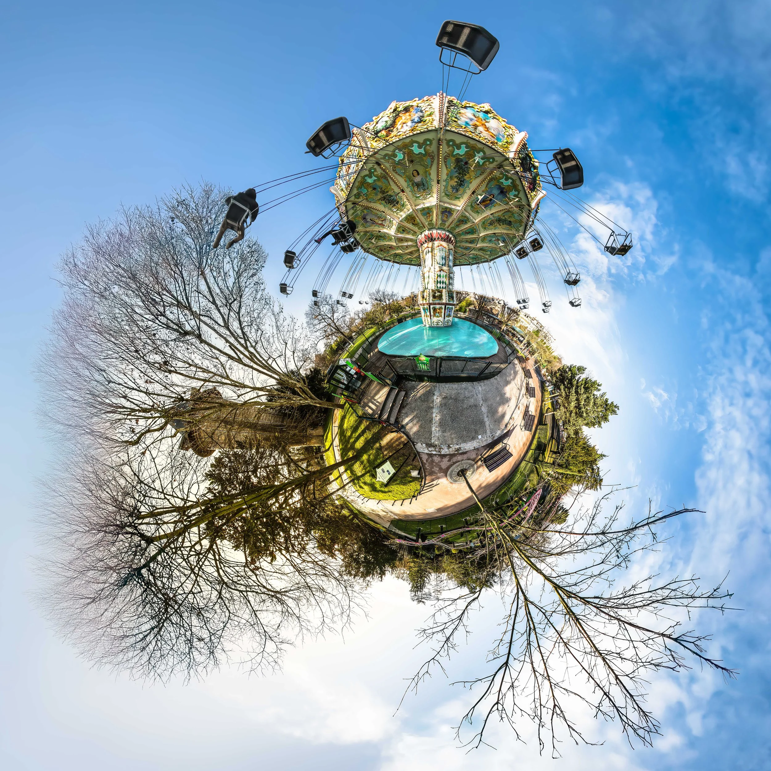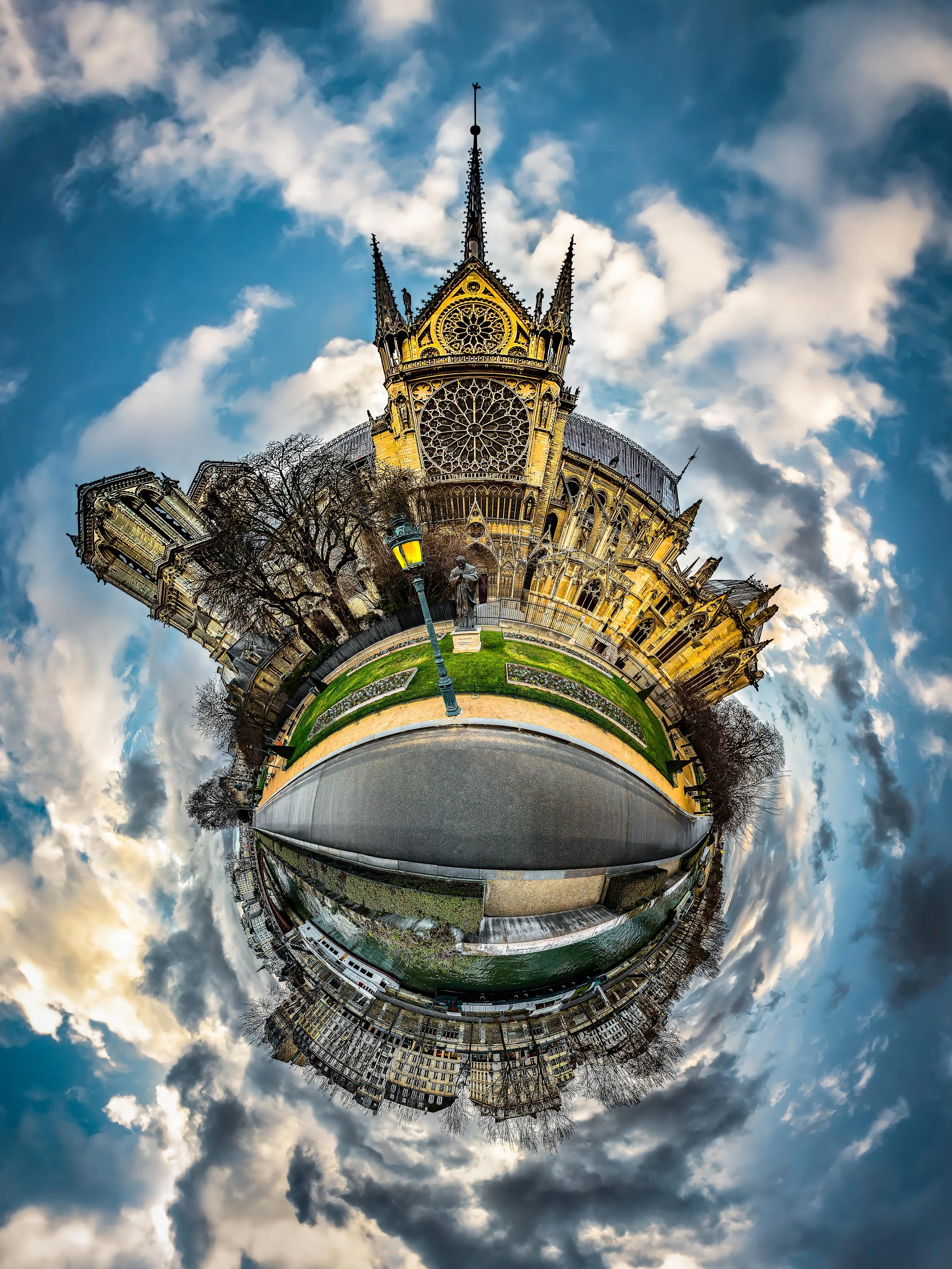 The creation of each piece involves a painstaking process, “My process for creating Tiny Planet artwork involves a meticulous, multi-step approach requiring professional equipment, sophisticated software, and extensive dedication,” the artist explains. It begins with a photo shoot using a 360-degree rotating head with a Fisheye Lens, resulting in 12 raw photos. The artist then works with these images in post-processing, carefully crafting, collaging, stitching and removing elements. Kleiman elaborates, “The 360-degree panoramic image is then transformed into a Tiny Planet by adjusting stereographic projection settings to achieve the desired effect. Final retouching involves fine-tuning exposure, highlights, darks, and contrast to produce a high-quality masterpiece reflecting my passion and commitment.”