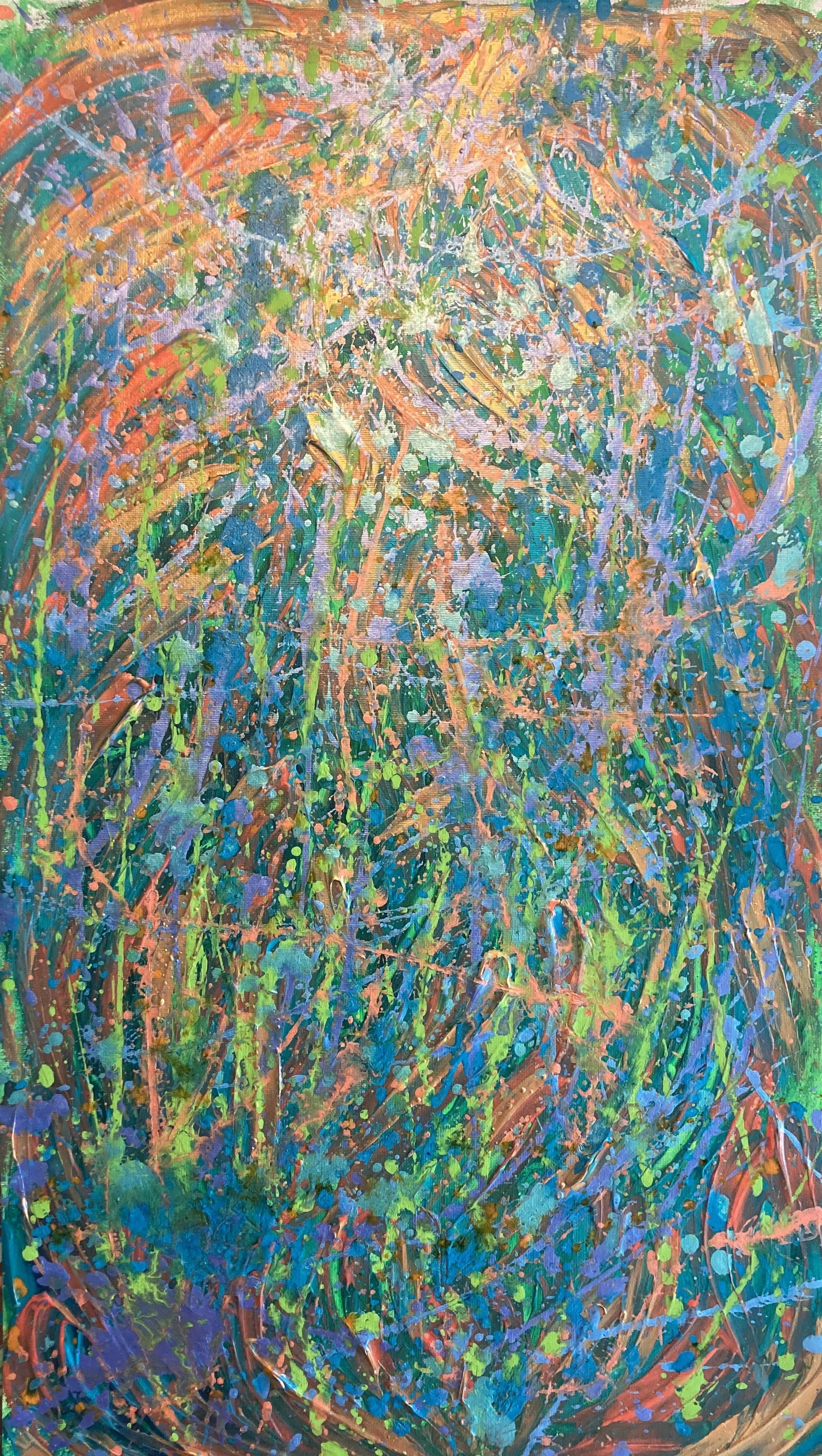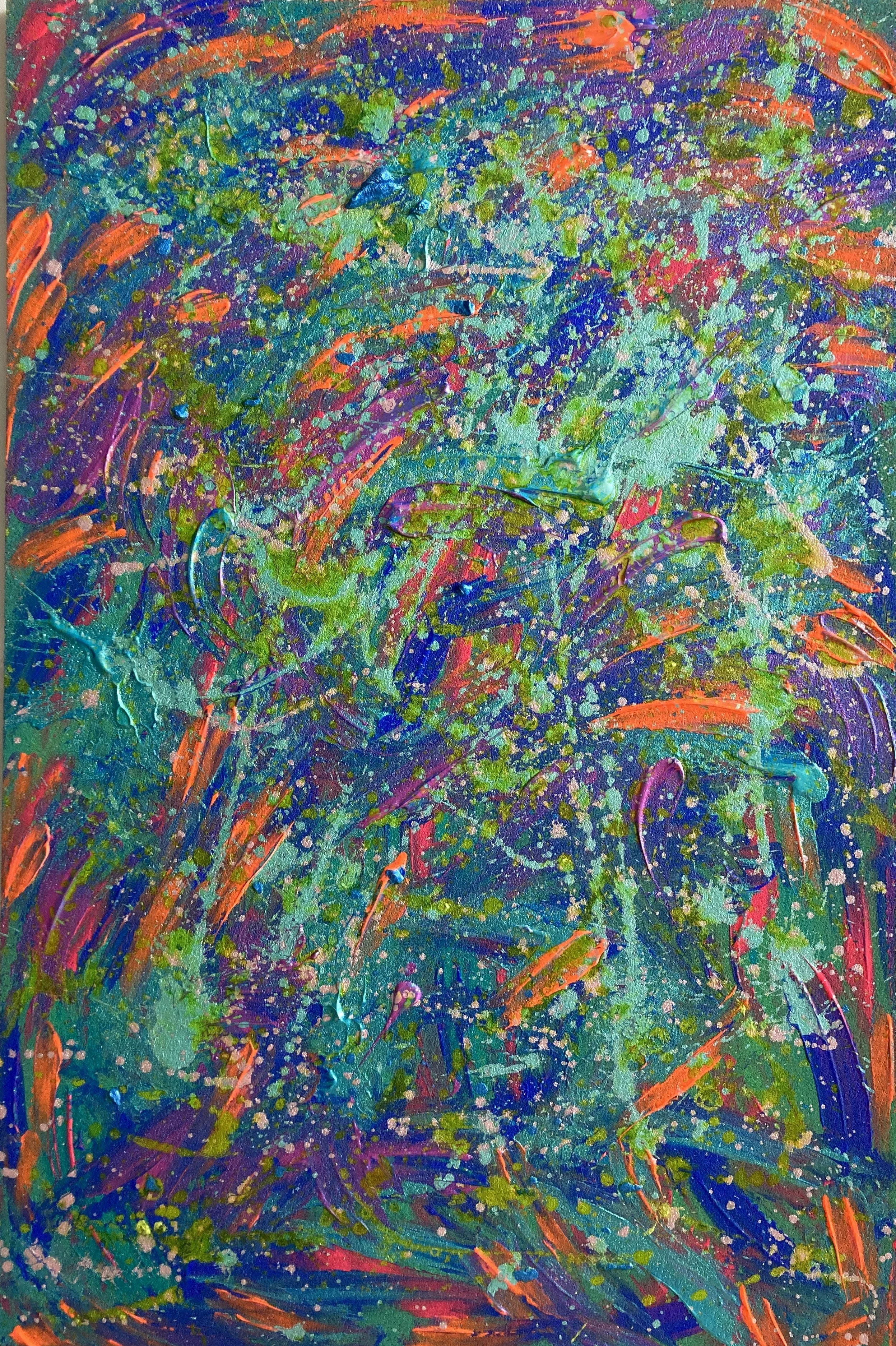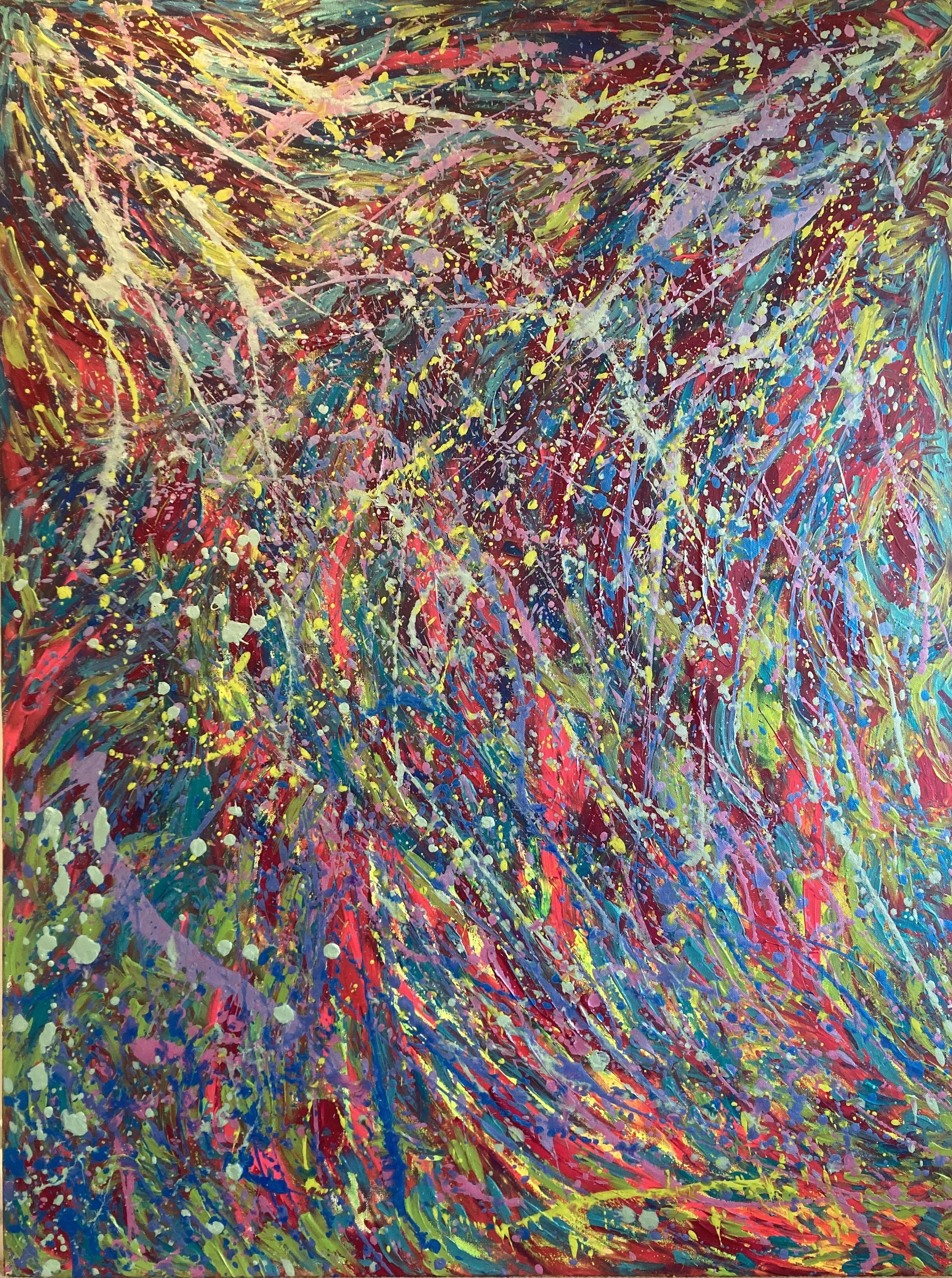 Painting for me is pure alchemy – driven entirely by the energy of emotions that need transmuting through my paint-covered hands, which channel the energy and transform it into a dance of vibrant colours on the canvas. My desire is for the observer to deeply connect with my work- for it to awaken something in their soul that has long laid dormant. – Karaya